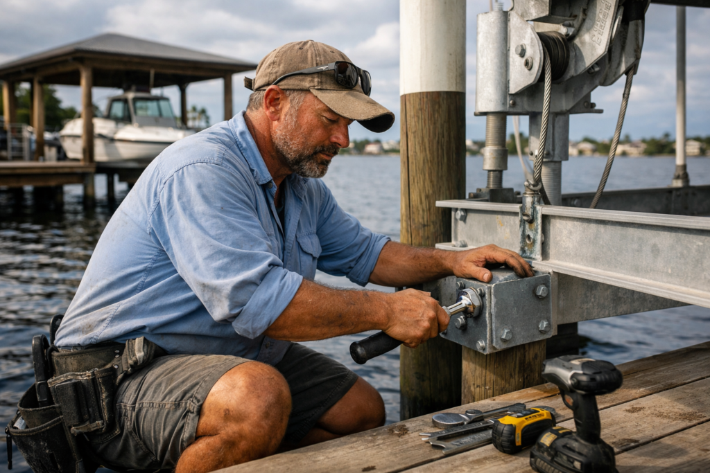 Small jobs like a loose bumper, worn seat, or a bad accessory mount can sometimes be handled by a handy owner. Once the repair touches structure, lift alignment, piling depth, or anchoring, it’s smarter to bring in a dock builder who works with marine hardware every day. One bad repair can wreck the whole system.